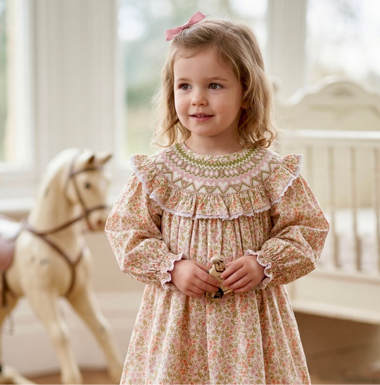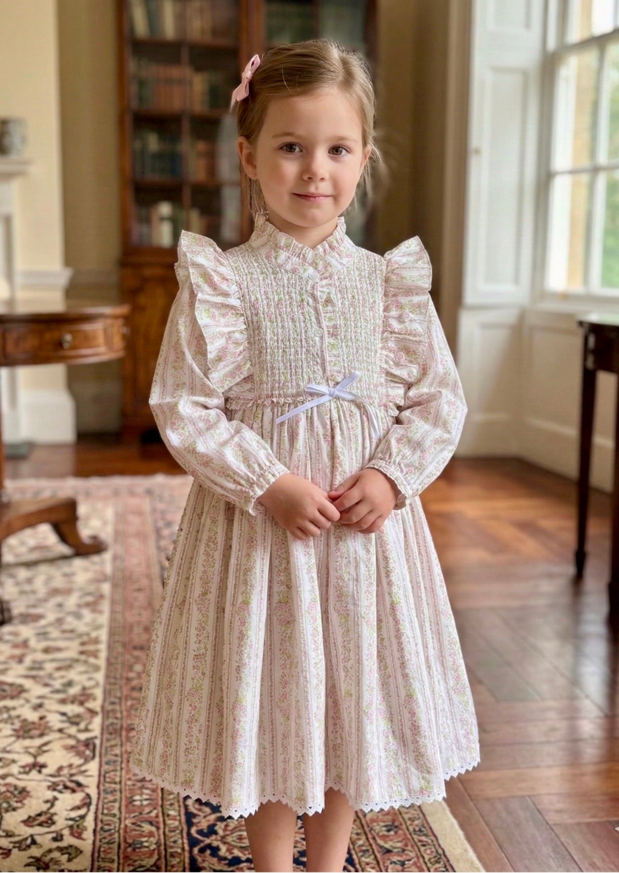 Rosalie Ruffled Smock Dress, Blush Floral Stripe