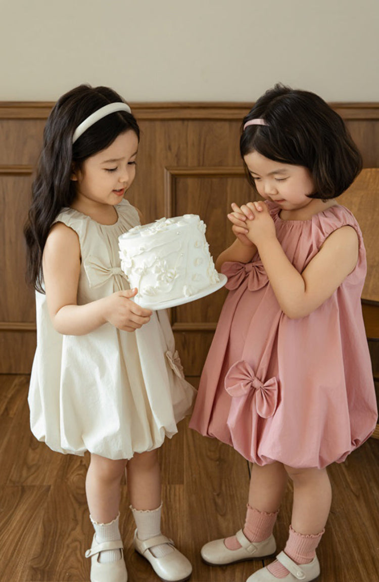 Lila Bow Appliqué Bubble Dress, Dusty Rose