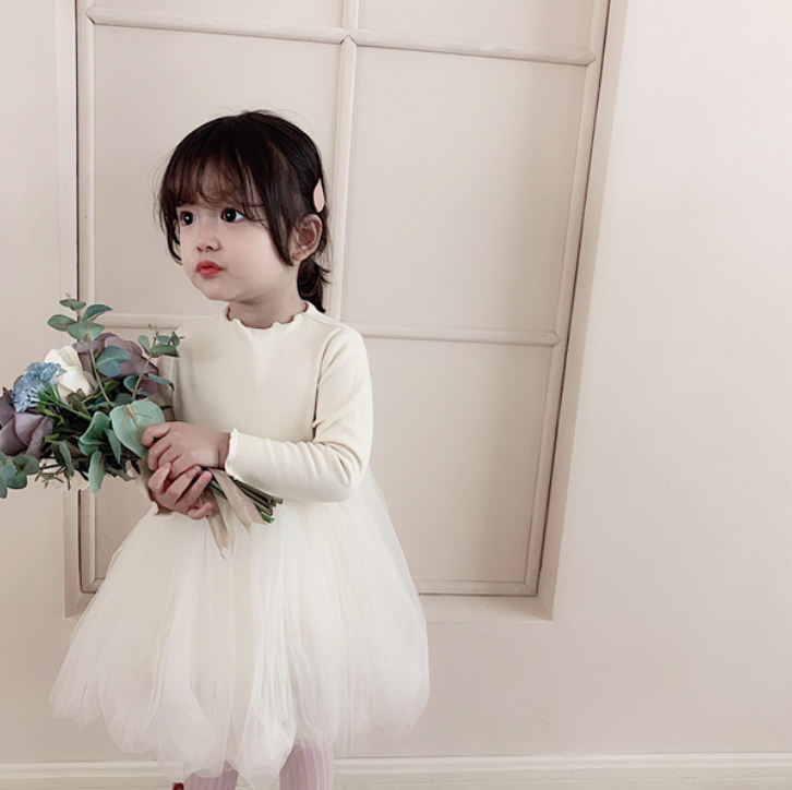 The delicate frilled neckline and cuffs add a touch of vintage-inspired sweetness, while the light ivory/creamy tone gives it a dreamy, ethereal look. Designed for movement as much as beauty, the soft cotton ribbed top and inner skirt lining allows all day comfort, while the airy layered tulle skirt creates a graceful silhouette that twirls beautifully.