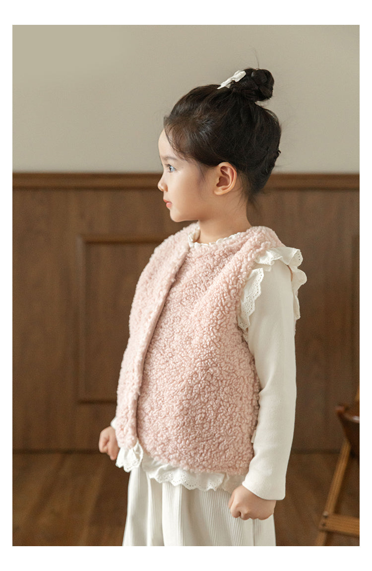 Girls Lace Trim Faux Shearling Teddy Vest, Dusty Pink